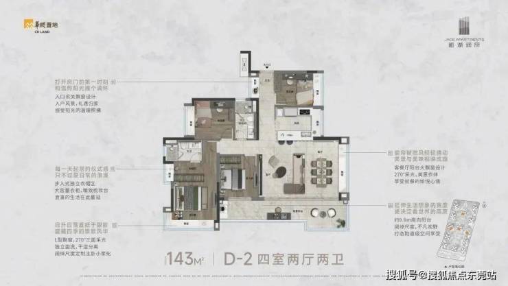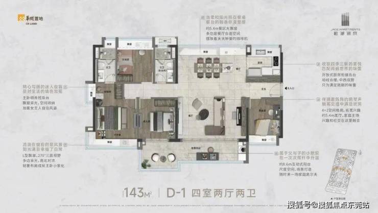 至于143㎡是楼王户型,超宽厅设计,巨幕飘窗,视野更通透,最大配置9.9米阳台,简直不要太完美。