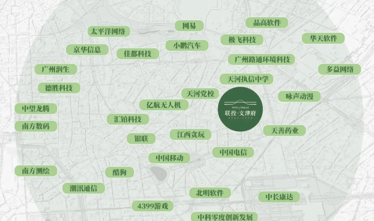 项目周边汇聚天河区党校、执信中学(天河校区)、网易、太平洋网络、中国移动、中国电信、小鹏等2500多家高新企业,与高知高净值圈层为邻,仅500多户圈层纯粹,谈笑有鸿儒,往来无白丁。