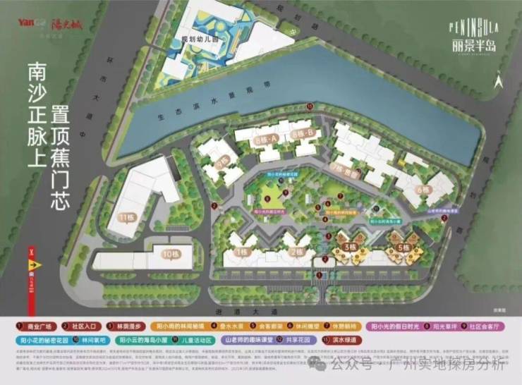毗邻蕉门河公园景观,蕉门河水系环绕,还有南沙儿童公园在侧,居民可以享受自然的生态环境,方便进行休闲娱乐活动。