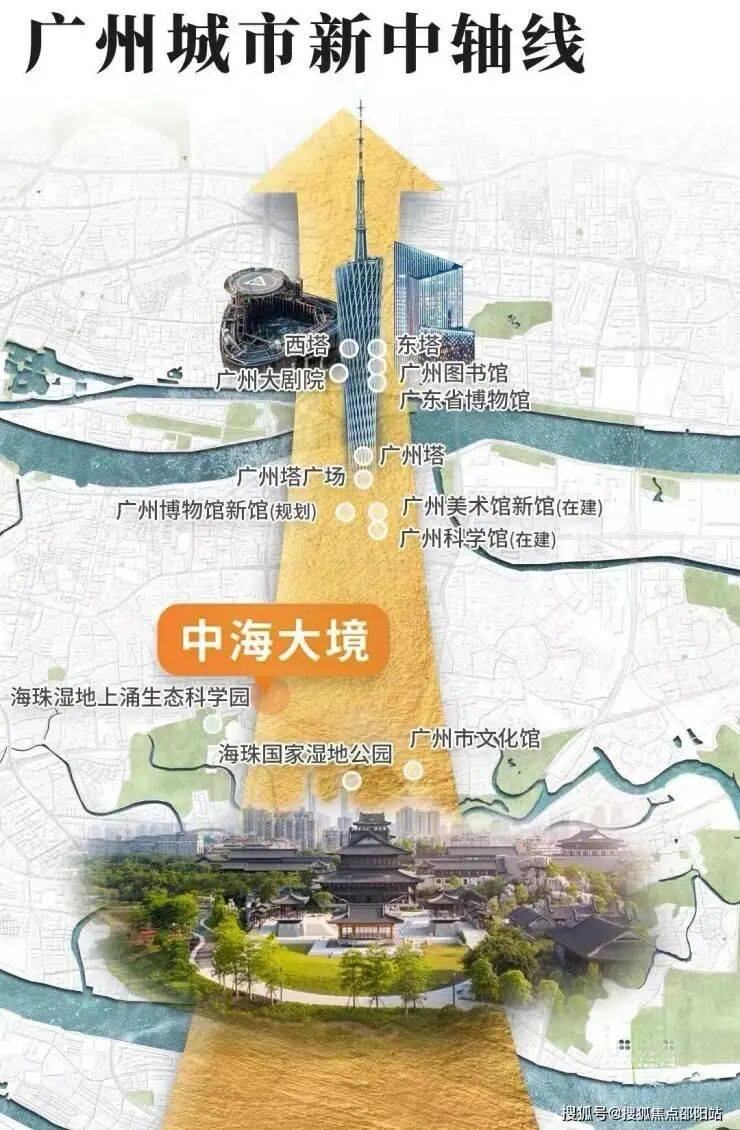 3月25日,《广州城市新中轴海珠片区三滘、东风启动区控制性详细规划》获批,正式宣布广州城市新中轴线将向南延伸,海珠区内打造长约6公里的中央绿轴!