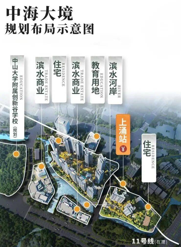 地铁11号线上涌站上盖,11号线是广州首条市区大环线,串联广州中心五区,与广州现有及未来的所有地铁实现换乘,被称为“换乘之王”(目前工程进度已达到99%,今年底就会通车)虹吸全广州的优质资源
