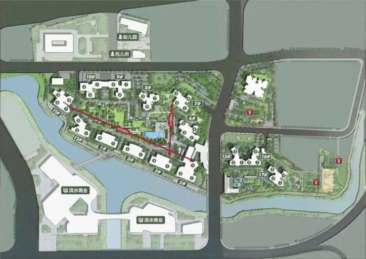 ◎超尺度的楼间距(东西楼间距最宽超过200米,南北间距最大达到约100米)