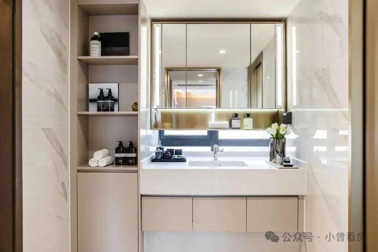 在卫浴柜的设计上,采用烤漆材质,铺就温馨而又奢华的居家氛围。通过展示性开放格增加随手用空间,加上封闭式存储区,简约而不简单,兼具美观与实用性。
