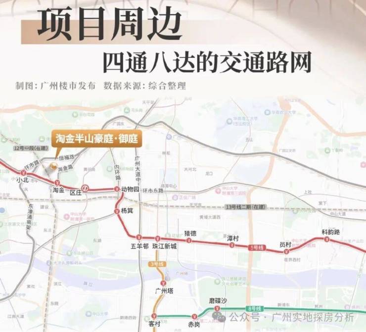 项目距离地铁5号线淘金站仅约600米,周边还有12号线、13号线2期在建中。