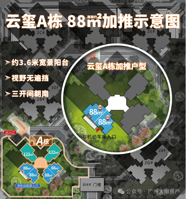 目前在售云玺组团,由7栋高层住宅构成,共计1144户,总占地约2.9万㎡,景观面积约2.2万㎡,绿化率高达39%,规划约140米超长景观绿轴;