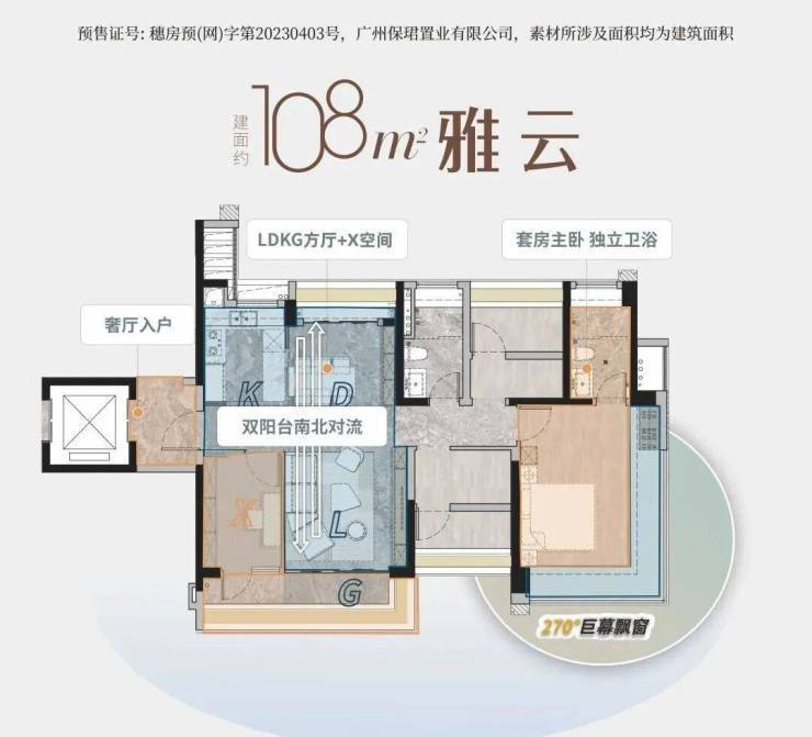 (2)108㎡家庭剧场采用LDKG+X一体化设计打破空间壁垒,双阳台构造实现功能分区。洄游动线串联中西双厨,270°观景窗打造移动画廊视觉体验。