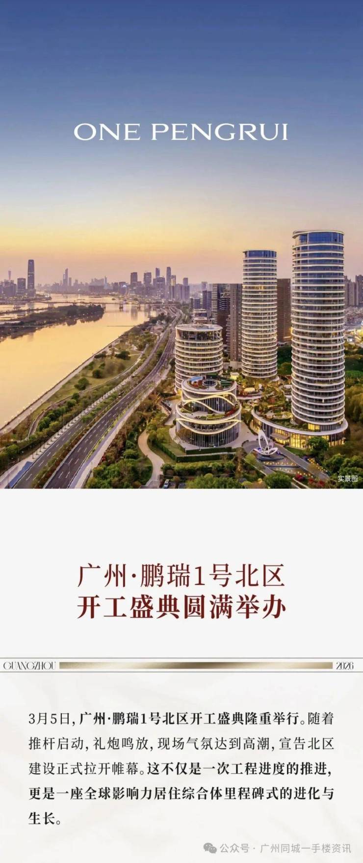 2023年5月,鹏瑞1号正式面世,该项目占地约5.42万平方米,共规划有6栋建筑,包含1号公寓、奢华酒店、高端定制商业、艺术中心、广州深湾会、停机坪等复合业态。