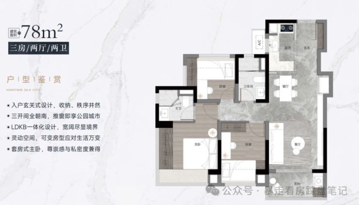 •户型:建面约78-121㎡ 城芯南向超100%使用率三至四房