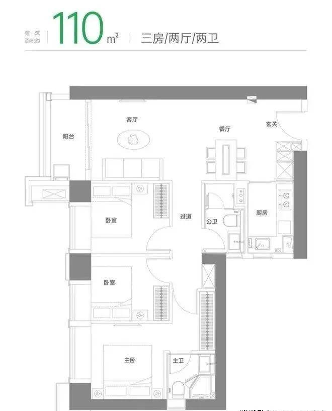 建面约110m²三房两厅两卫
