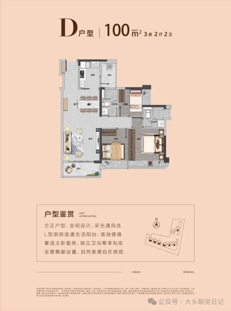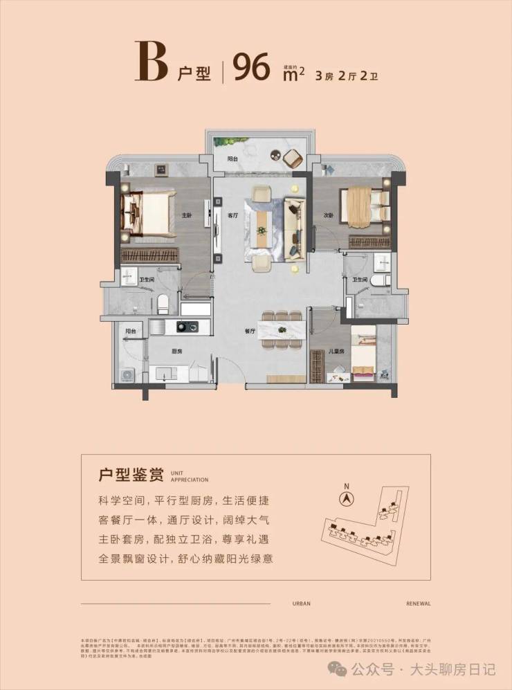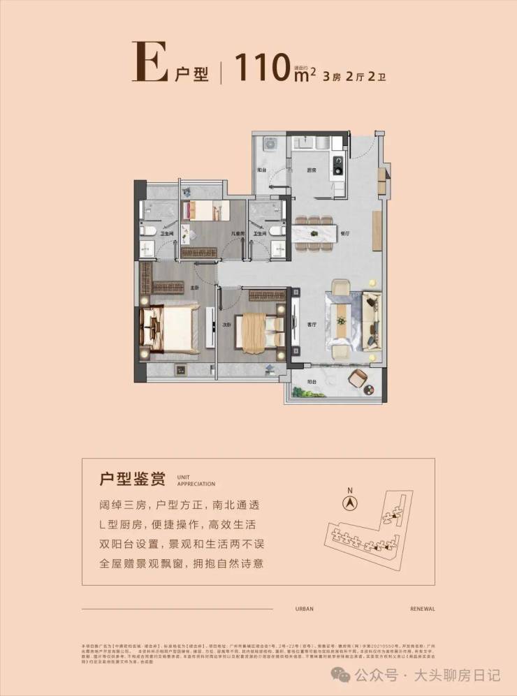 【约87㎡三房两厅一卫】望中心园林 | 双阳台对流设计 | 超阔视野