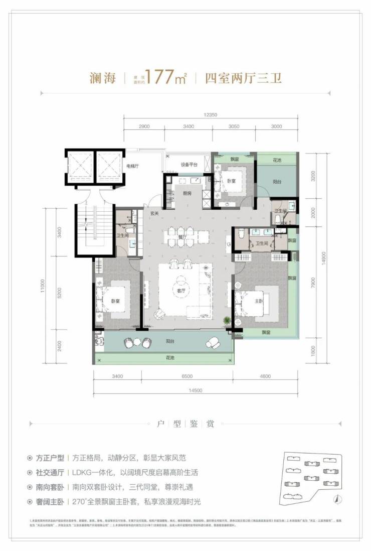 规划建筑面积约126-213㎡观海奢装大平层,约3.1米阔绰层高,部分户型创新设计270°全景飘窗主卧套、四开间朝南等,全成品高标奢装,营造全新舒居体验。