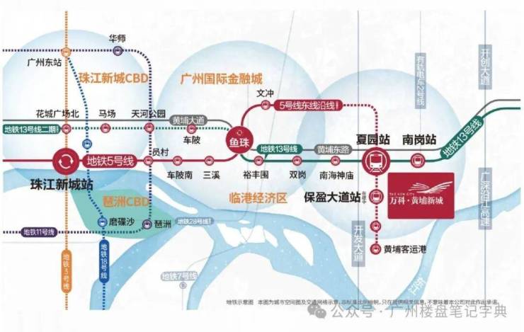 2地铁3站点:2地铁(13/5号线),3站点(夏园、南岗、保盈大道)环绕,4站到鱼珠,5站到天河,不换乘直达珠江新城;