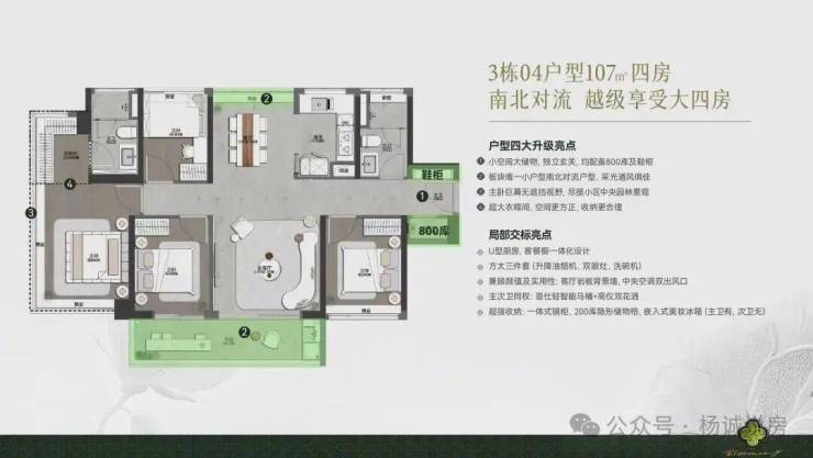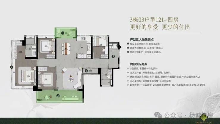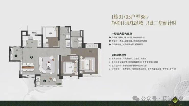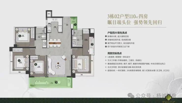 精工细节:户型得房率超80%,配备方太全隐升降油烟机系统,物业费4元/㎡·月