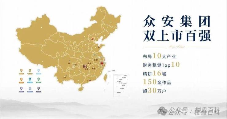 众安集团,三上市百强房企,中国新城市获评中国商业地产公司品牌价值 TOP10,连续14年位列中国房地产百强企业,多次获评“上市公司财务稳健性Top10”,精耕广州、杭州等重点城市,逐渐落子海外,先后在加拿大、日本等地创立公司。