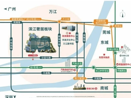 在区位上,项目位于万江新城板块,旁边则是万江的区府板块,也算是占据了万江的中心地带。