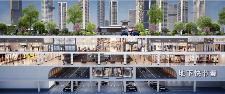 ·周边毗邻全国最大的地下城空间,总共5层空间,其中地下1-2层为公共交通、商业、文化和停车功能,其余三层为地铁及新交通设施,在高标配套赋能之下,金融城正开启更大的能级。