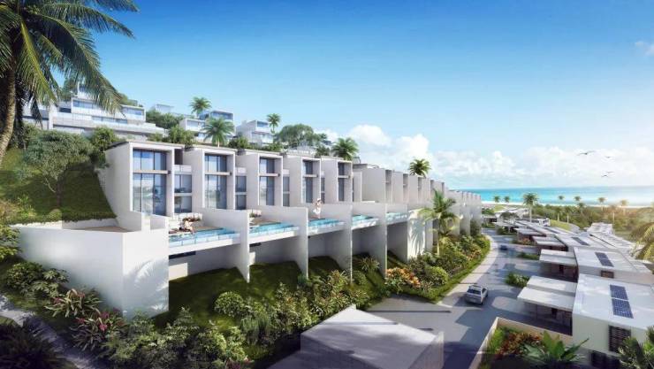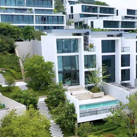 山海院墅的建筑设计,由东南亚休闲建筑和设计新理念的先驱,全球顶尖设计团队OVL执笔,力求呈现滨海度假的最美一面。团队出国调研18个月,最终在普吉岛卡塔岩石酒店找到灵感,以简约明快的现代线条语言,创作出匹配山海璞玉的海岸艺墅。