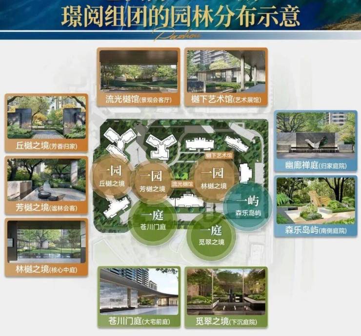 央园林整体实现“一园两庭一屿”多重景观布局。