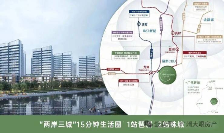 项目距离地铁18号线龙潭站1200米,并临近11号线,双线交汇,通勤珠江新城、琶洲仅需30分钟。