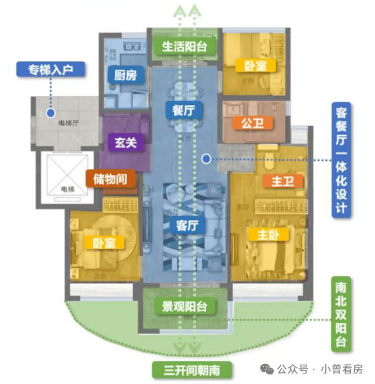 臻稀纯南板式设计,通风采光更佳,专梯低密舒适小洋房。