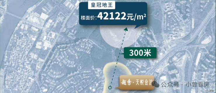项目约300米处的皇冠地块,以42,122元/m2的楼面价被重金拿下,一举成为金沙洲价值地块。