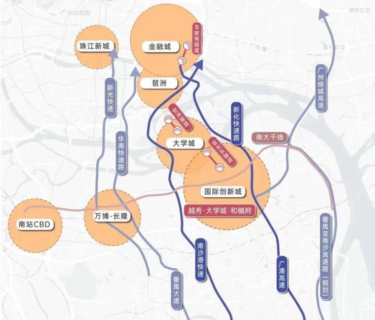 项目距离4号线地铁新造站约1.2公里,步行大概需要18分钟左右,不算很方便,乘坐4号线,4个站到万博,5个站即可到琶洲,自驾的话出门就是南大干线,去往南站和万博也很方便,金光东隧道也已经通车,开车去往大学城也很快,加上官洲隧道和车陂南隧道,未来自驾去往琶洲和金融城也更加方便。