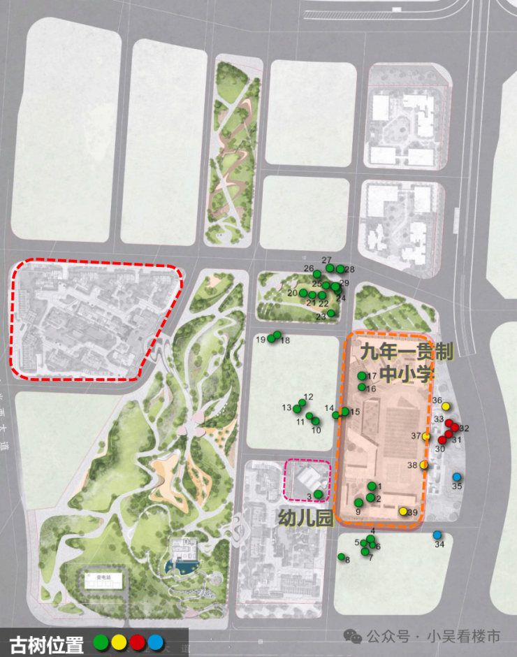 25万㎡的中轴公园,其中的约11万㎡则交由越秀配建,未来将打造成国际古树公园,啧啧,这名字一听就有故事,不过房产君都打听好了,叫古树公园,原因是这里保留了39棵百年乌榄树,平均年龄达到115岁,是广州城区规模最大的古乌榄树群,为了守护这些古树,建筑在规划设计上,进行了最大限度的避让,专门划分一块独立的绿地,并建立起了“一人一树、一树一策”的保护政策。