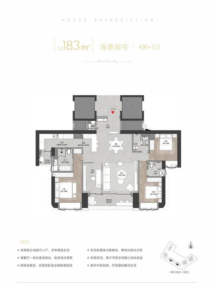 全球顶级设计团队打造,选用国际一线品牌,从空间、格局、再到每一个细节,皆以高标准匠造,同时秉持“智美精工、健康生活”的理念,打造国际标准的健康生态家,带给塔尖圈层期待已久的环湾巅峰生活。