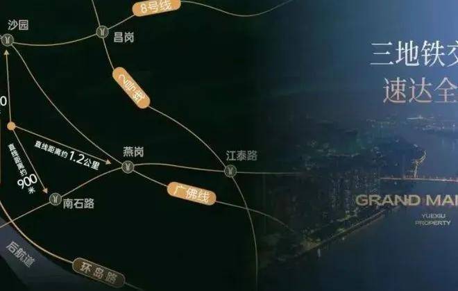 换乘之王8号线沙园地铁站:约800米(百度地图直线测距)