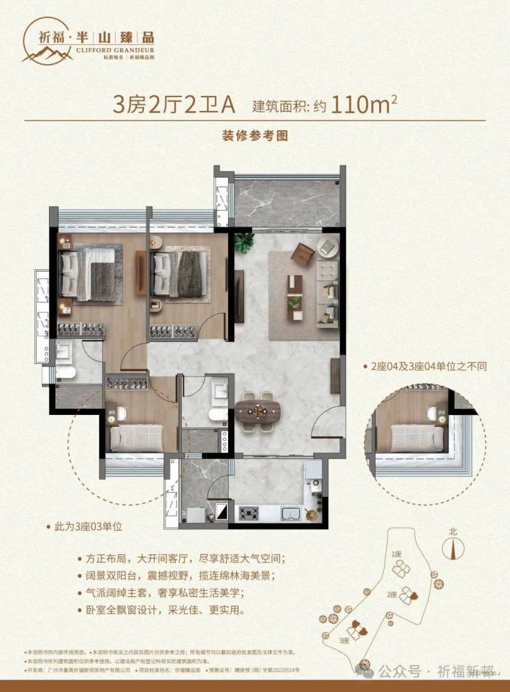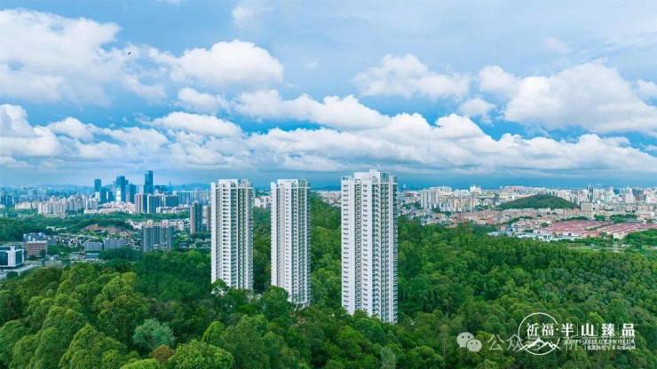 【祈福半山臻品】位于祈福新邨内,是祈福新邨最后住宅组团,由3栋楼组成,栋栋间距开阔近百米,视野无遮无挡!半山之上,推窗见林,环境优美,鲜氧环绕;南瞰9000亩大夫山多重山脉,尽揽600亩祈福湖、祈福大城风光+广州繁华都市!