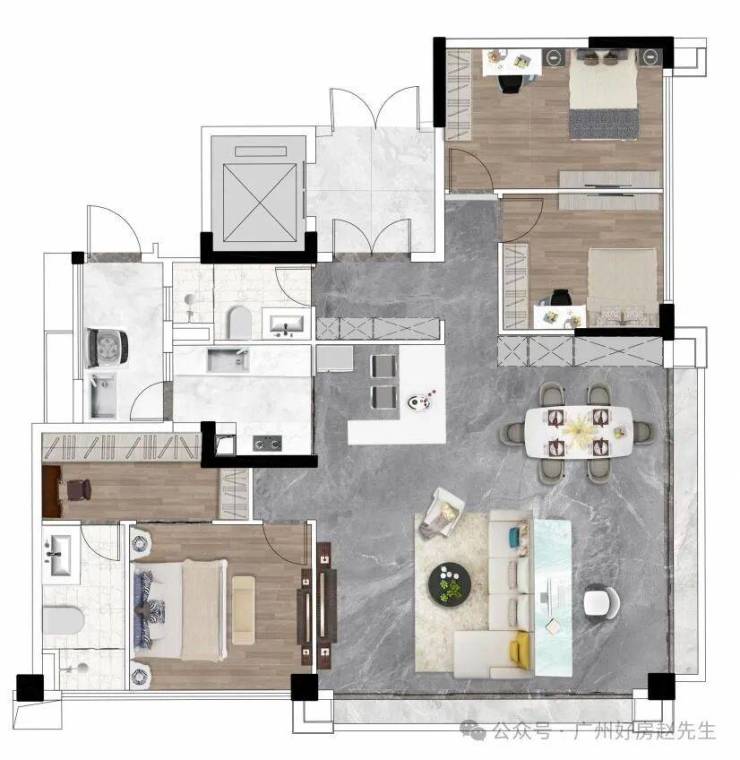 配套:老城核心,享周边成熟生活配套,4大淳熟商圈(江南西、乐峰、江燕、中大)拱卫一个广纸新城,双地铁