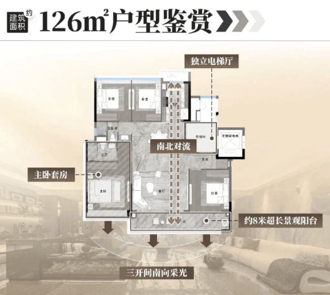 其中,125-126㎡四房主打高性价比,户型方正无浪费空间
