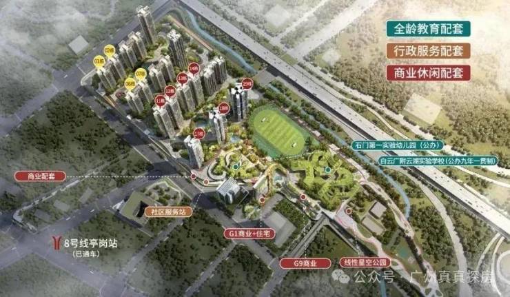 项目仅离亭岗站约400米,地铁与社区无缝连通,举步通达城市中心生活圈。8号线将串联白云湖数字科技城、中大创新谷、琶洲等科创中心,可换乘13条线路,线路跨越海珠、荔湾和白云三大区。