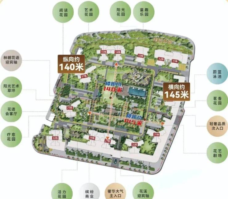 约10万㎡社区绿色园林,超百米阳光楼距,超阔央景园林一览无遗约5.2万㎡央景园林、内拥近600㎡蔚蓝泳池、超2500㎡全龄游乐园、六大主题花园等生活领地; 项目周边3公园环绕,其中北面规划建设奥体绿廊公园,临近天河儿童公园、岐山公园两大市政公园;园林整体以两轴、三环、四大剧场、六大花园,形成别具一格的现代美学艺境;内有定制级艺术草坪、户外会客厅、蔚蓝泳池、全龄游乐园等配建;