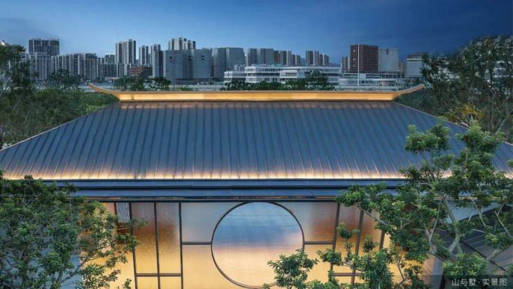 山与墅建筑立面采用三段式构图,以双重批檐、大挑板、格栅等为脉络,甄选钢化玻璃面、铝板等材料,臻筑大雅院境,演绎新中式院墅融合古今的美学气韵。