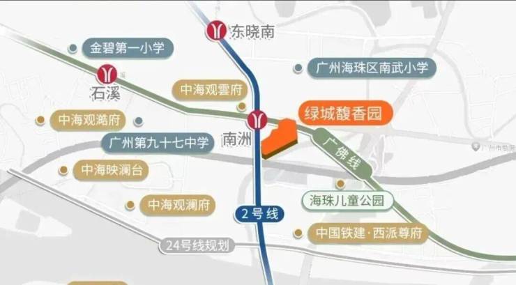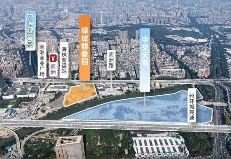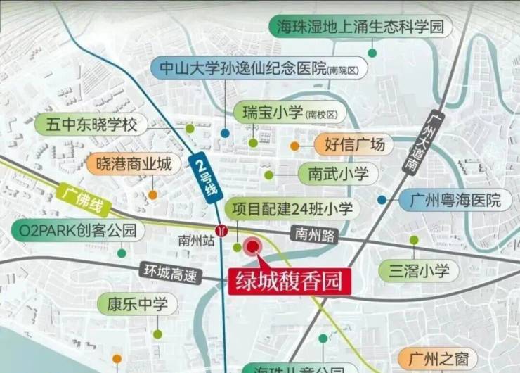 项目交通配套:项目位于广佛线和地铁2号线南洲站c口上盖,3个站可到客村、5站珠江新城、9站到琶洲、8站到万博/金融城等地,后期项目会建造一条地下连廊直通地铁。项目自驾北有南洲路,南有环城高速,西面有在建的东晓南高架南延,出门便是广州大道。