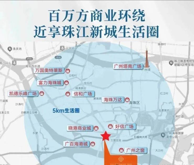 项目商业配套:项目自带1800㎡风情商业街,3公里范围内百万方商业环绕,约1.1公里海珠城城光荟,约1.7公里广州之窗商务港,约1.1公里广百海港城,约2.5公里海珠万达广场等。