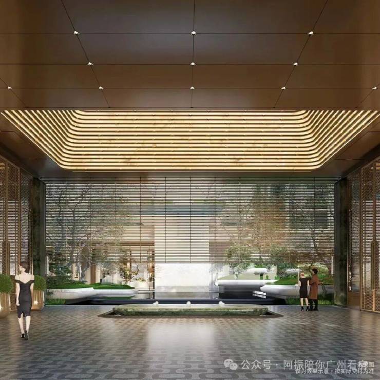 在设计上,入户大堂有8-9米的挑高,还做了卢浮宫阿波罗长廊的灵感设计;参照星级酒店打造高定会所,健身房,以及内部中心立体园林。