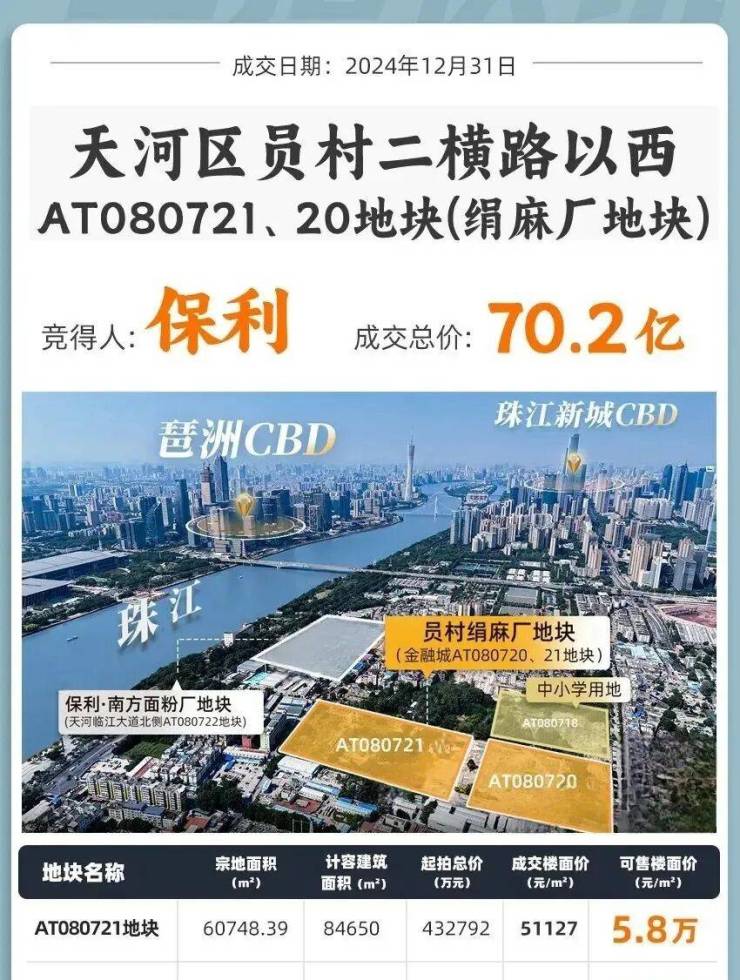 2024年12月31日,保利以总价70.2亿元底价拿下绢麻厂地块,分为两个地块,AT080720地块在北面,楼面价为5.07万/㎡;AT080721地块在南面,楼面价为5.11万/㎡。