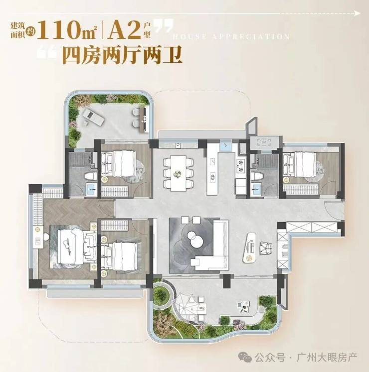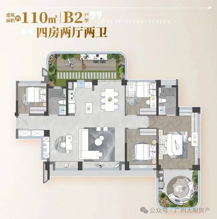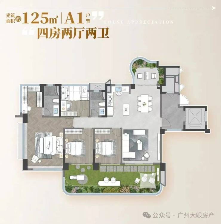招商的拍地条件注定了,它会成为广州第一个拥有40%全赠送空中花园+25%阳台占比的新盘,使用率将会接近150%。