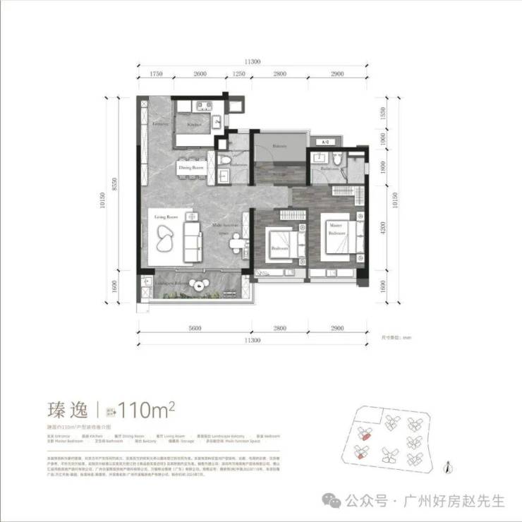 >>建面约𝟏𝟏𝟎m²户型<<