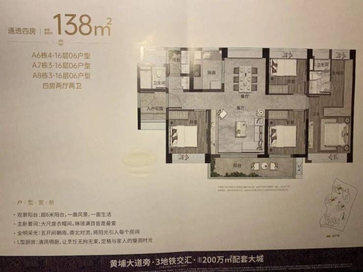 138平四房直接做到五开间朝南,主卧的衣帽间也更大了,居住体验感很好。