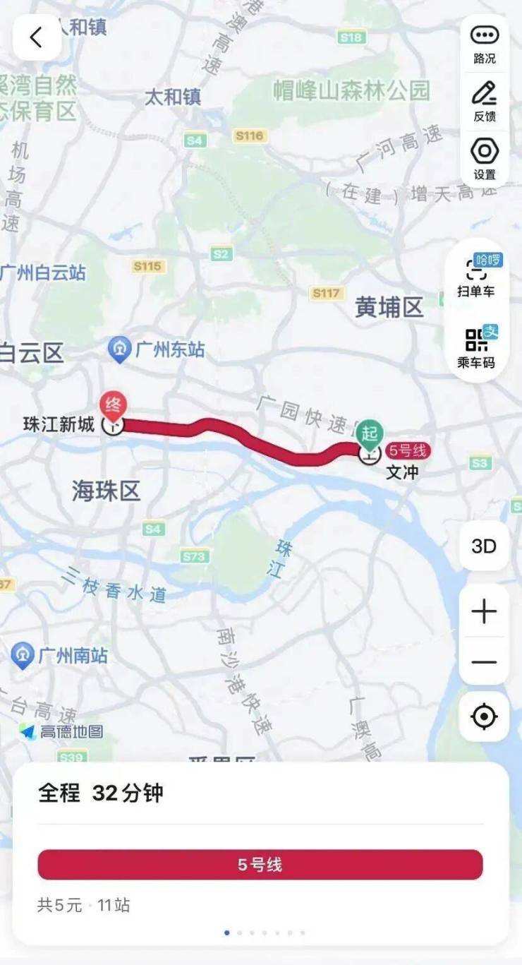 从小区去珠江新城坐地铁简直不要太方便,乘坐地铁5号线文冲站上车,五块钱,11站,32分钟直达,地铁距离楼盘最近只有80米,简直是地铁上班族的理想生活。