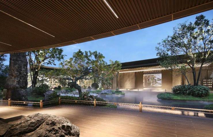 项目的核心亮点是:内部园林参照余荫山房风格打造,假山流水、亭台绿植错落有致,营造出东方诗意居住氛围。