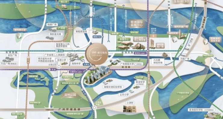 保利湖光悦色坐落于海珠区华洲路与新海街交叉口南50米,正处海珠国家湿地公园东南门旁