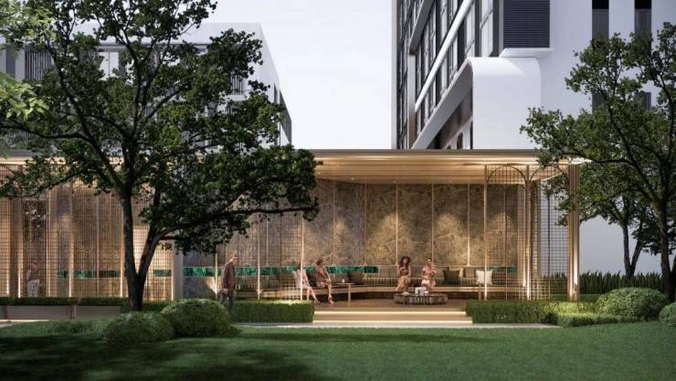 项目的园林由GVL怡境国际打造,该团队是白天鹅宾馆的景观设计团队,对荔湾岭南文化的了解非常深厚,从效果图可以看到,园林运用了大量的绿植,而且还有流水的点缀,岭南园林的精髓都在园林里得以还原。