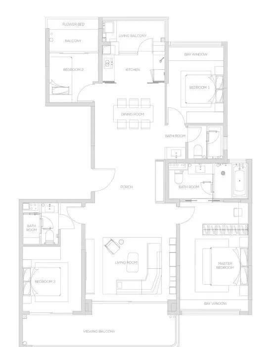 168㎡四叶草户型 四室两厅三卫