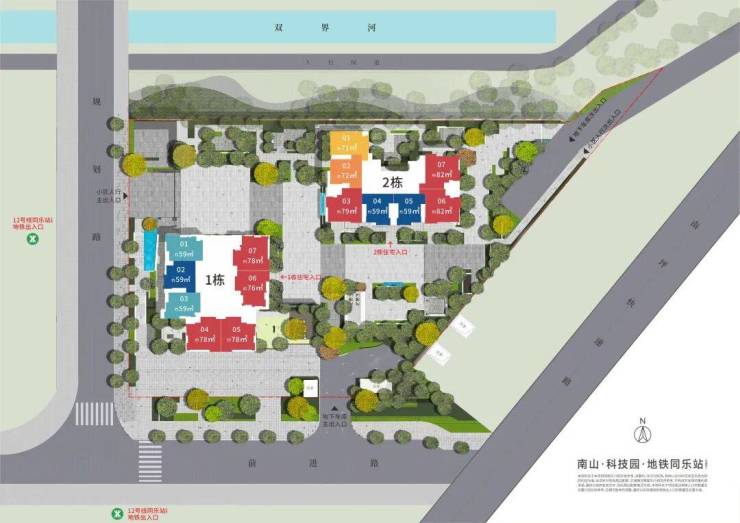 项目接驳地铁12号线/24号线(规划中),12号线预计2022年通车,五站可达高新园,24号线开通后四站速抵高新北。