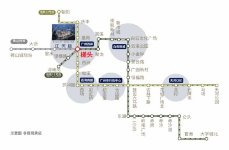 • 地铁:三地铁交汇,距西洲站仅300米;12号线(已开通,换乘之王)、13号线二期(2025年开通)、规划佛山8号线,6站直达纪念堂,直达珠江新城