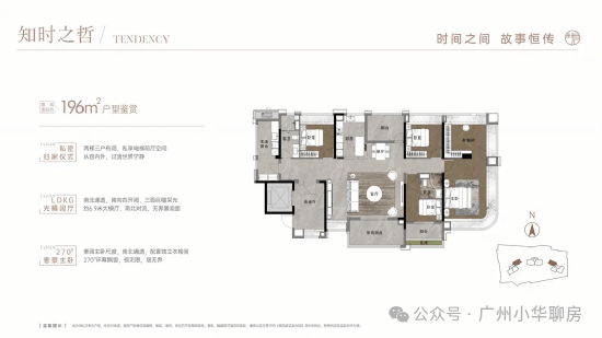 196平户型,做了双主套,客厅、卧室、阳台等开间尺度也比同面积段产品更大。